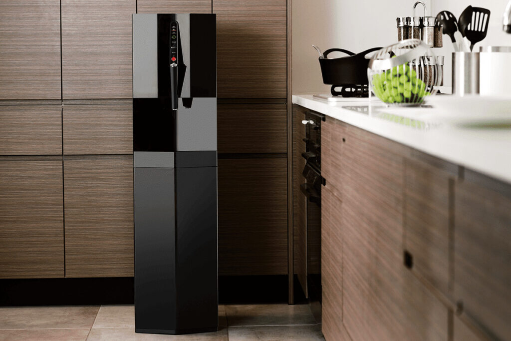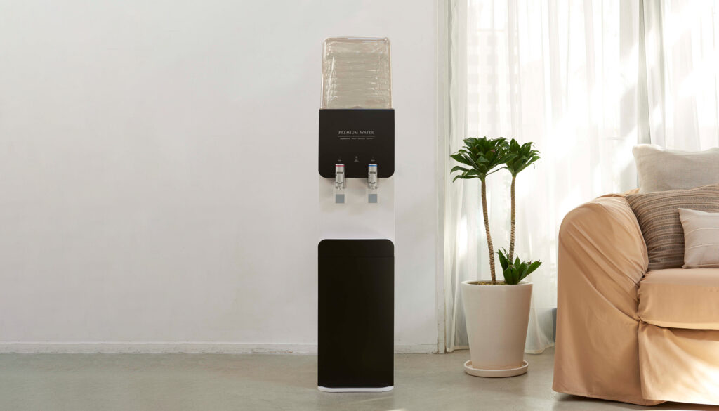 プレミアムウォーターの黒色のサーバーは、上品なイメージと高級な質感を持っています。