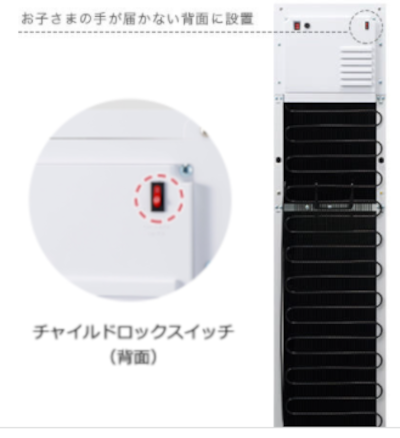 チャイルドロックのスイッチは、お子さまの手が届かない背面にあるので、