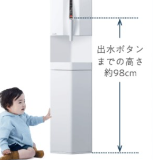 また、チャイルドロックがOFFのときでも、お水を出すボタンまでは、約98cmの高さがあるので、ちいさなお子さまは手が届かず、さわることができません。