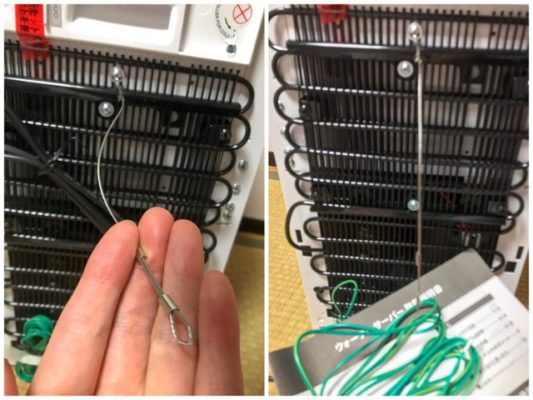 上記の、転倒防止ワイヤー、フックおよびアース線の接続は自分でやりましょう。