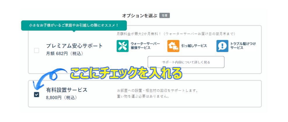 プレミアムウォーターの申込みのときに、有料設置サービスも一緒に申込む